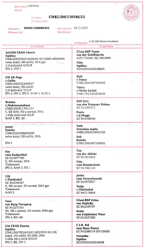 | APOLO Dixipa, DOB December 4 2023, elbows: 0/0, hips: 0/0, hips: 0/0, DNA registered in Germany.
