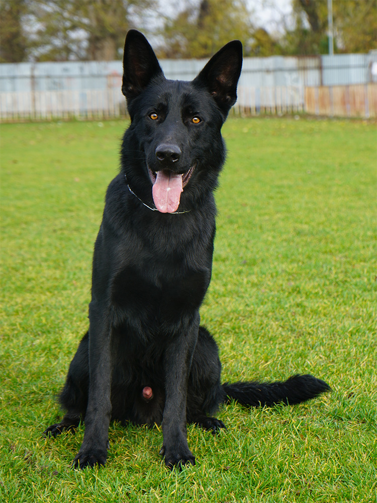 DESCRIPTION: APOLO is 2 years old solid black large and strong male with excellent environmental behavior. APOLO has very nice bond with his handler. He is confident dog that is good in any sort of environment and also he doesn't have any problem with any type of surfaces. APOLO was raised in the family with 7 years old child. He is used to other animals. He was raised in the kennel and during summer he was taken inside the house. He has nice basic obedience. His protection is very good and real. He is fast and has nice hard bites. He is able to bite inside and outside of building. APOLO has very high ball drive and he is able to search inside and outside of buildings with great persistance using his excellent nose. APOLO has also nice pedigree full of hard and strong dogs. APOLO would be suitable as a dual purpose law enformcement dog or as a personal protection dog. |