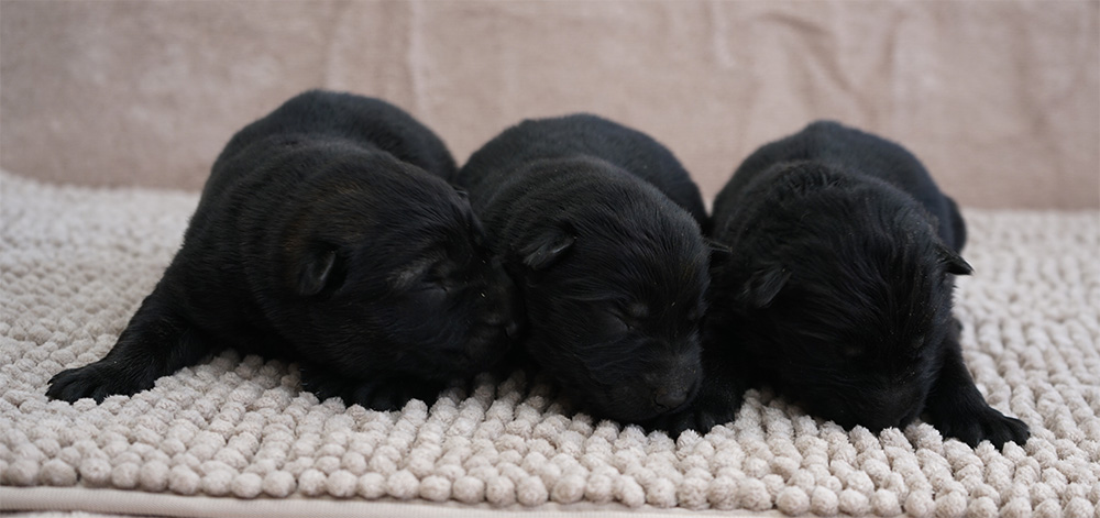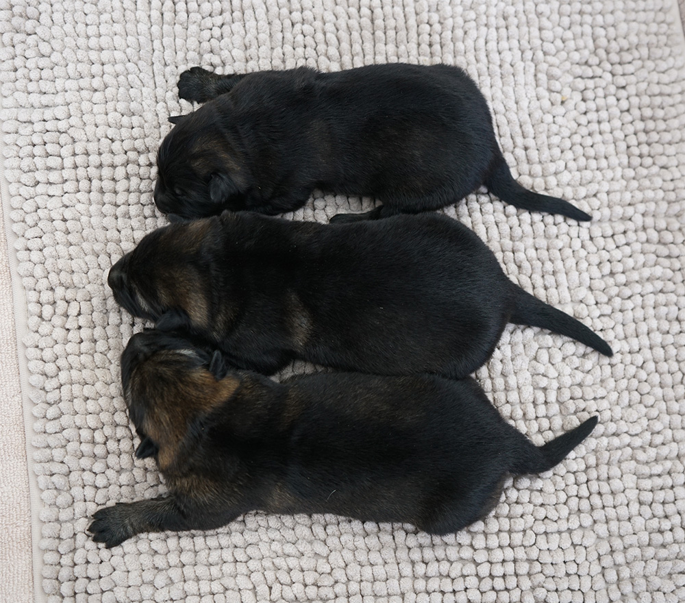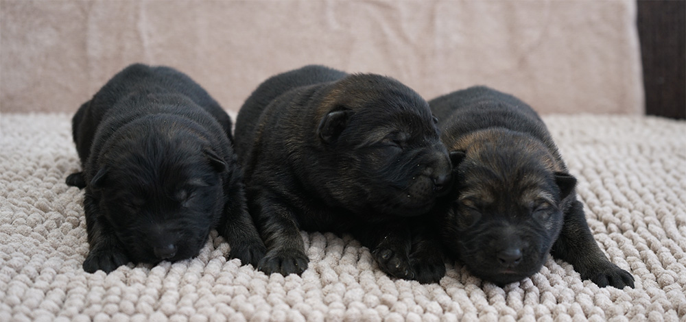 LEX II z Jirkova dvora x ZAFIRA Nokafi The litter was born March 5 2026 and there is 1 solid black female available. Puppies are strong, healthy with beautiful heads, strong bones and gorgeous dark pigmentation. This breeding is a combination of 2nd and 4th blood lines and many of the anstors from both sides of the pedigree were used in our JINOPO breeding program in last 20 years or more. These dogs were naturally hard dogs with balanced drives, strong nerves and gorgeous conformations. The combination of these parents guarantees strong health, strong bones and excellent working drives.
